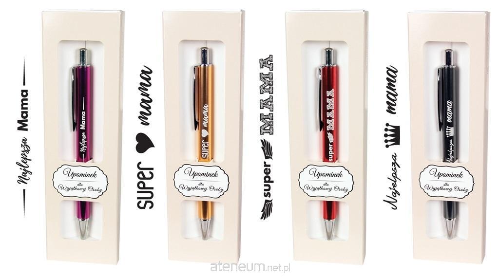 Metalowy, automatyczny długopis CARLOS z nadrukiem jako prezent na różne okazje dla MAMY. Zapakowany w prezentowe etui. Występuje w mixie kolorystycznym z kilkoma wzorami nadruku. Wkład niebieski wymienny.