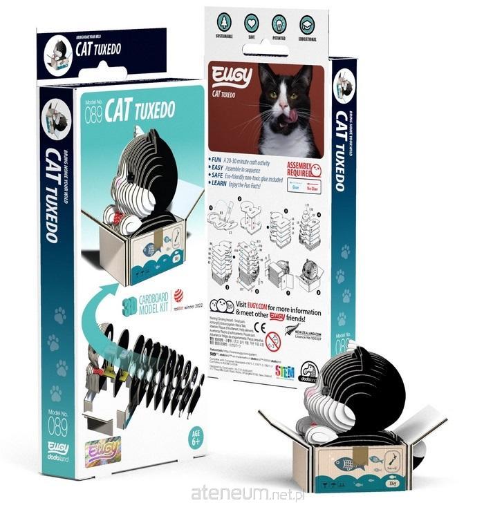 Eugy zaprojektowane w Nowej Zelandii są wykonane z przyjaznego dla środowiska kartonu pochodzącego z recyklingu i farby na bazie ryżu. Zestaw zawiera ponumerowane elementy układanki, nietoksyczny klej, oczka oraz instrukcję do zbudowania kota w pudełku. Zbierz całą serię zwierząt, ptaków, dinozaurów i wiele innych. Dla dzieci w wieku 6 lat+.