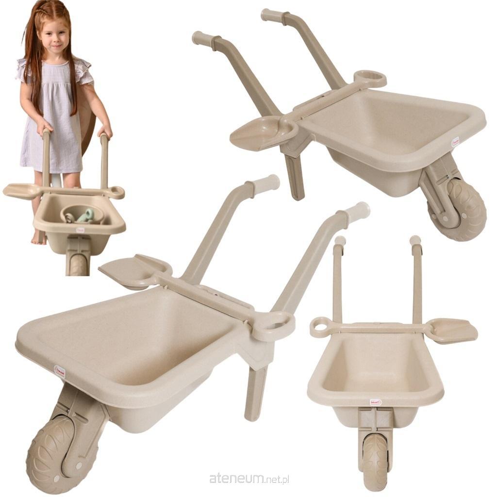 Ergonomiczne uchwyty: Uchwyty taczki są zaprojektowane w taki sposób, aby były łatwe i wygodne w chwycie dla małych rączek, co umożliwia dziecku łatwe manewrowanie tą zabawką.