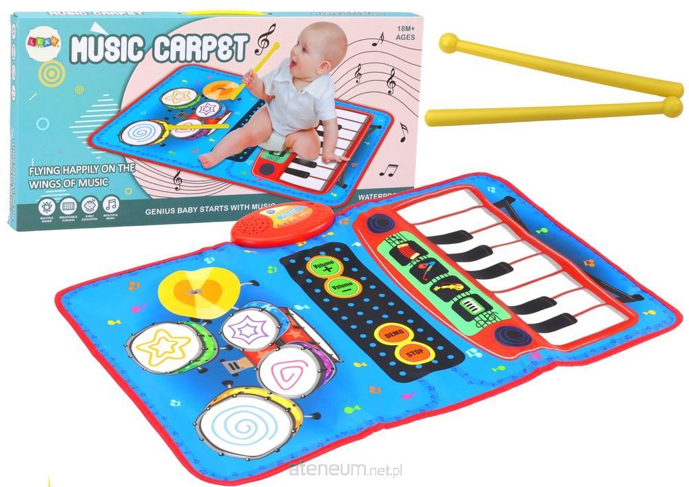 Mata Muzyczna 2w1 Interaktywna Perkusja Pianinko Pałeczki Interaktywna mata muzyczna dla dzieci to niezwykle rozbudowana zabawka, która zapewnia wielowymiarową rozrywkę oraz edukację. Matowy dywanik został zaprojektowany z myślą o wzbudzeniu ciekawości i zachęcie do eksploracji muzycznych możliwości. Początek przygody z tą zabawką rozpoczyna się od wizualnego uderzenia - kolorowy design maty z wizerunkami perkusji i pianinka natychmiast przyciąga uwagę maluchów, budząc ich zainteresowanie. Już na pierwszy rzut oka widać, że czeka tu wiele do odkrycia. Do zestawu dołączone są dwie pałeczki, które stają się narzędziami w rękach małego muzyka, umożliwiającymi odkrywanie różnorodnych dźwięków i rytmów poprzez uderzanie w elementy perkusyjne. Ta czynność nie tylko dostarcza dzieciom przyjemności, ale także rozwija ich zmysł dotyku, koordynację ruchową i zdolności motoryczne. Mata reaguje na dotyk dziecka, wytwarzając wesołe dźwięki i melodyjki, co dodaje jeszcze więcej zabawy i zachęca do interakcji. To dynamiczne reakcje na działania dziecka budują jego poczucie kontroli i angażują go jeszcze bardziej w zabawę. Jednym z kluczowych elementów tej zabawki jest jej potencjał edukacyjny. Dzieci uczą się rozpoznawać brzmienia różnych instrumentów, doskonalą swoje umiejętności muzyczne i kreatywność, a także rozwijają koordynację ruchową oraz koncentrację. Ta rozbudowana mata muzyczna nie tylko zapewnia godziny wspaniałej zabawy, ale także stanowi wartościowe narzędzie do rozwoju umiejętności muzycznych i motorycznych, inspirując dzieci do odkrywania świata dźwięków i rytmów już od najmłodszych lat. Mata zasilana jest na baterie 2x 1.5V AA, które nie są elementem zestawu. Wymiary maty: 69cm x 44,5cm Wymiary opakowania: 50cm x 24,5cm x 4cm Posiada certyfikat CE, ponadto jest zgodny z normą EN71. Przeznaczony dla dzieci od 18 miesiąca życia.