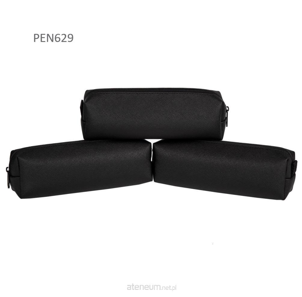 Piórnik jednokomorowy czarny ekoskóra połysk