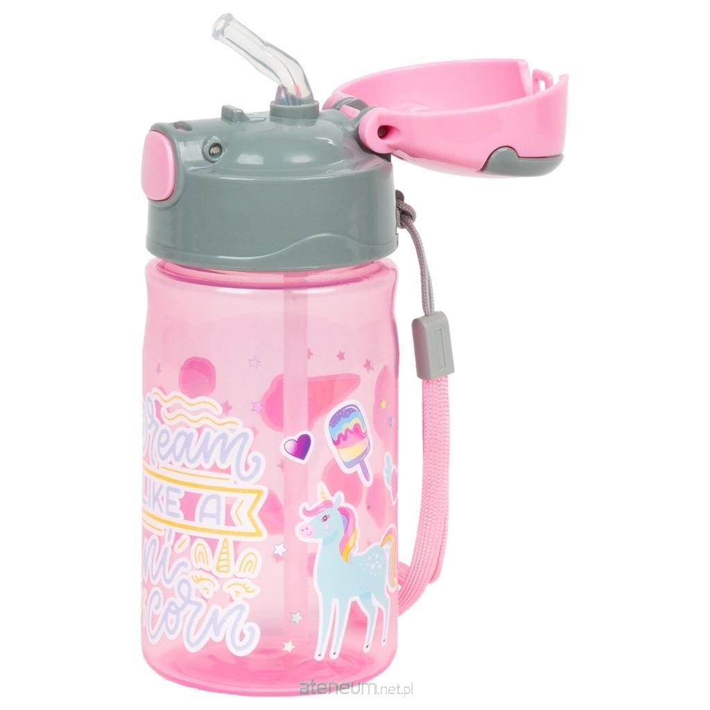 Przezroczysty bidon z nadrukiem o pojemności 330ml. Bidon wykonany z bezpiecznego i wytrzymałego na upadek tworzywa, wolnego od BPA. Posiada chowany ustnik oraz pokrywkę zabezpieczającą, która otwiera się przy pomocy przycisku. Bidon posiada poręczny kształt idealny dla dziecięcej ręki
