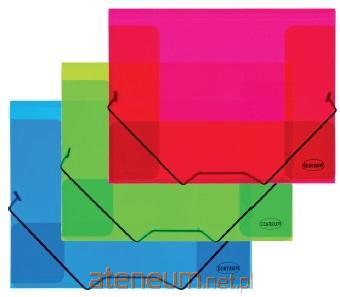 wykonana z mocnego PP o grubości 450 mic, klapki wewnętrzne zabezpieczają zawartość przed wysunięciem, zamykana okrągłą dociskającą gumką, pojemność 150 kartek