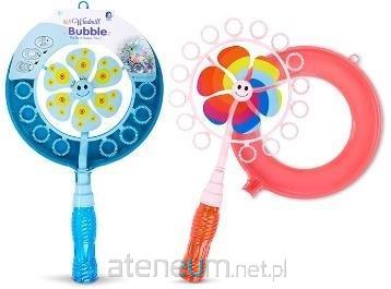 W zestawie: wiatraczek do robienia baniek mydlanych, płyn do baniek, 2 kolory, wym. opakowania: 23 x 40,5 x 4 cm., 3+