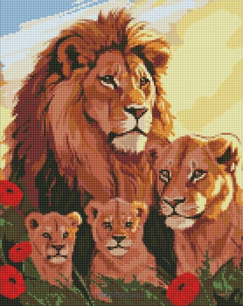 Diamentowa mozaika - Rodzina lwów 40x50cm