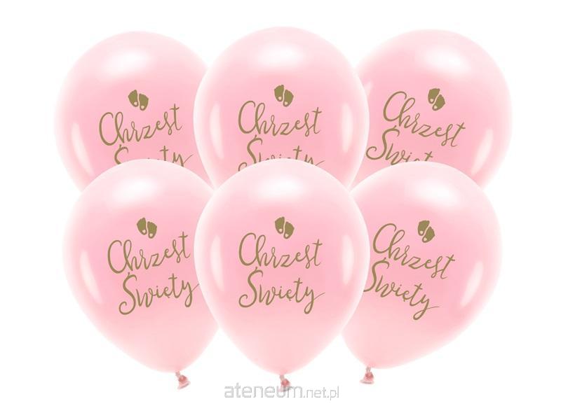 Balony pastelowe Eco w kolorze rumianoróżowym ze złotym dwustronnym nadrukiem Chrzest Święty, średnica ok. 33 cm.(1 op. / 6 szt.)