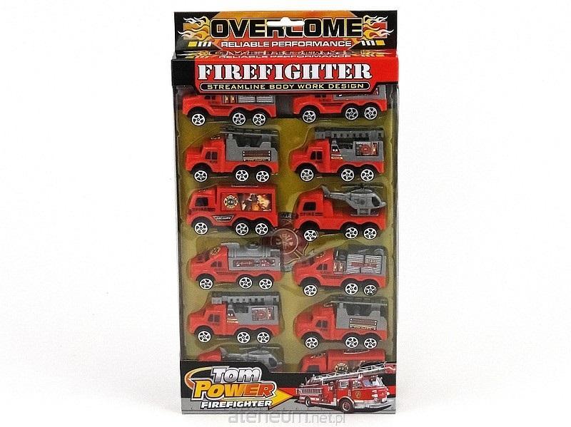 zestaw 12 aut straży pożarnej, naciąg sprężynowy; 33x19x4cm, W/B