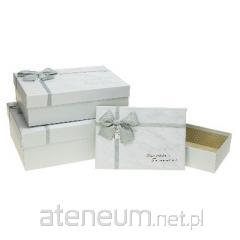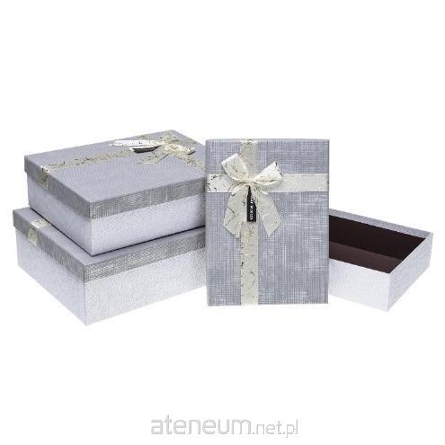 Pudełko prostokątne z kokardą 3szt srebrny ROZETTE