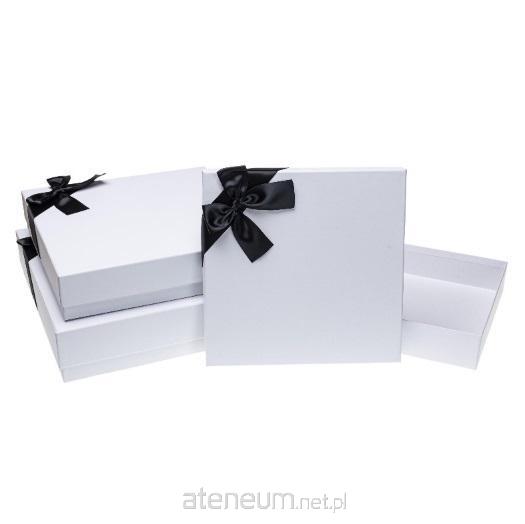 Zestaw pudełek prezentowych kwadratowych 3szt, biały z czarną kokardą