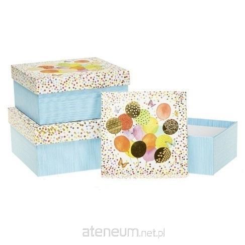Zestaw pudełek prezentowych kwadratowych 3szt, motyw z balonami