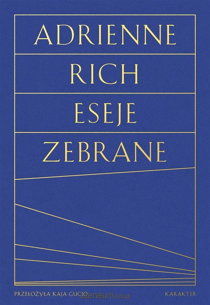 Eseje zebrane Najlepsze i najważniejsze eseje amerykańskiej poetki i intelektualistki pozwalają w pełni docenić jej talent, błyskotliwość i skalę politycznego zaangażowania. Znajdziemy tu porywające eseje o budzeniu się w autorce świadomości feministycznej, o jej literackich mistrzyniach oraz o tym, jak pojmuje rolę poezji i społeczne zaangażowanie sztuki. Przeczytamy m. in. fragmenty słynnej książki "Zrodzone z kobiety. Macierzyństwo jako doświadczenie i instytucja", przełomowy esej "Przymus heteroseksualności a egzystencja lesbijska" czy tekst, w którym uzasadniała odmowę przyjęcia odznaczenia państwowego od administracji Billa Clintona. Zgromadzone teksty ukazują pełne spektrum jej zainteresowań - daje się tu poznać jako żarliwa feministka, niepokorna myślicielka, polityczna wizjonerka.