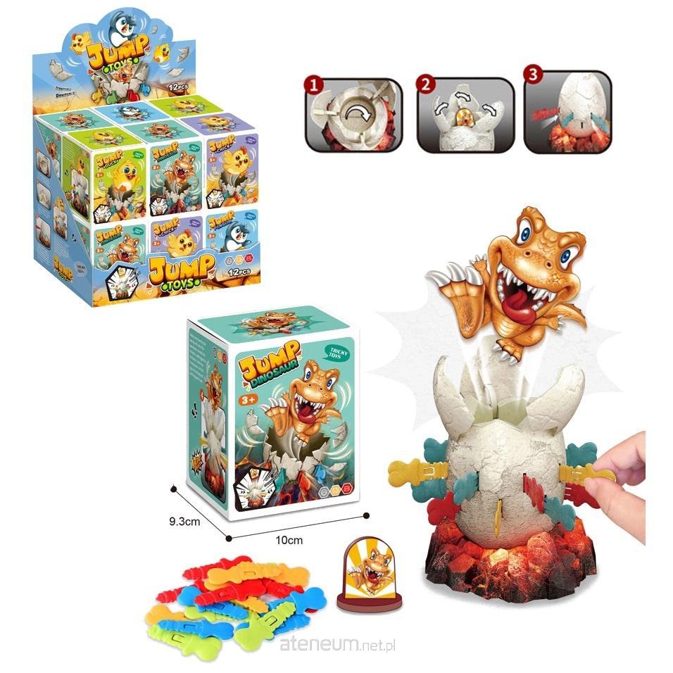Jajko stawiamy na dołączonej podstawce, następnie należy umieścić zwierzątko w jajku. W tym momencie możemy zacząć zabawę i delikatnie wsuwać patyczki wokół niego. To pozornie prosty proces, ale teraz przygotuj się na najtrudniejszy moment - gdy gracz umieści patyczek we właściwym miejscu zwierzak nagle wyskakuje z jajka. Wzory: dinozaur, pingwin, kurczątko