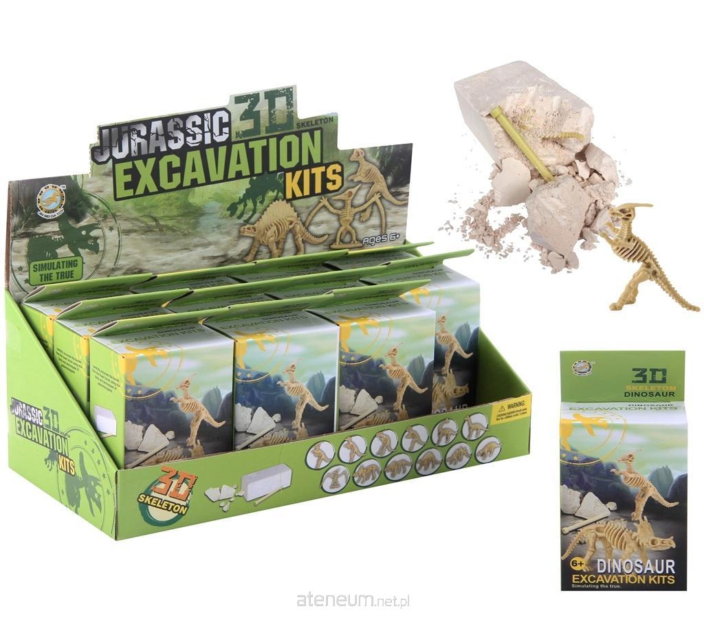 Zestaw zawiera gipsowy odlew z którego za pomocą narzędzi należy wydobyć szkielet dinozaura, świetny zestaw, który pozwoli dziecku poczuć się jak naukowiec paleontolog.
