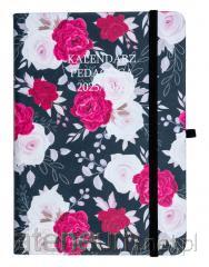 wewnątrz: plan roku i rozkład roku 2025, terminy ferii zimowych, święta oficjalne i zwyczajowe, podróże, protokół powypadkowy w przypadku stłuczki, notes, skorowidz teleadresowy, kalendarium dodatkowe na 2024-2025-2026 rok