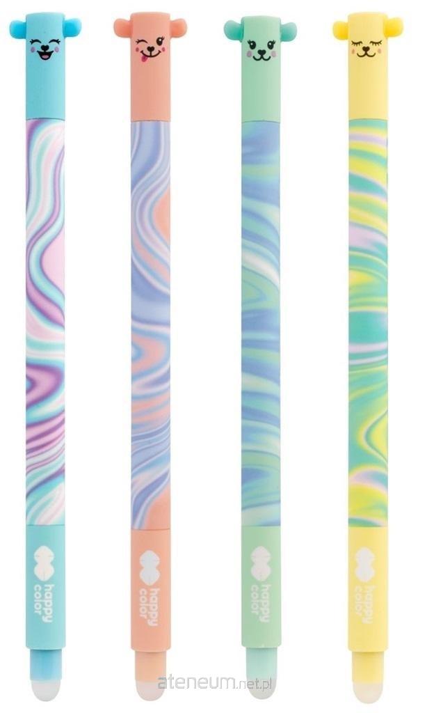 Wymazywalny długopis żelowy w kolorowej obudowie. Dzięki unikalnej formule tuszu napisany tekst można łatwo wymazać. Miękka obudowa typu soft. Gumka do wycierania znajduje się na końcu obudowy lub na skuwce. Grubość linii pisania: ,5 mm. Wkład w kolorze niebieskim (Crystal blue). Wymienne wkłady