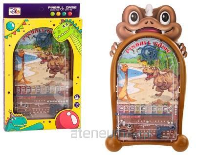 Gra Zręcznościowa Pinball Dinozaury Stojak Brązowy Gra pinball w kolorze brązowym z motywem dinozaurów to ekscytująca zabawka, która przenosi klasyczną rozrywkę do nowego, fascynującego świata. Ta gra jest idealnym połączeniem tradycyjnej mechaniki pinballa i wciągającej estetyki pełnej smoków i dinozaurów. Główna atrakcja gry polega na wystrzeliwaniu kulek, aby zdobyć jak najwięcej punktów. Plansza gry jest wyposażona w stabilny stojak, który zapewnia solidne podparcie podczas intensywnych rozgrywek. Dzięki temu gra jest stabilna i wygodna do zabawy na różnych powierzchniach. Unikalnym elementem jest papierowa zakładka w kształcie brązowego dinozaura, którą można umieścić z tyłu planszy. Zakładka nie tylko dodaje estetycznego uroku, ale także wzbogaca tematykę gry, przenosząc graczy w świat pełen prehistorycznych stworzeń. Tło planszy zdobi motyw dinozaurów, co dodatkowo zwiększa atrakcyjność wizualną gry. Kolorowe ilustracje dinozaurów i prehistorycznego świata tworzą ekscytujące tło dla dynamicznej akcji pinballa, angażując wyobraźnię graczy. Gra pinball w kolorze brązowym z motywem smoka to nie tylko zabawa, ale także doskonały sposób na rozwijanie umiejętności motorycznych, refleksu i koordynacji ręka-oko. Dzięki połączeniu klasycznej mechaniki pinballa z wyjątkową tematyką, gra ta zapewnia godziny wciągającej rozrywki dla dzieci i dorosłych. Wymiary gry: 28cm x 20cm x 2m Wymiary stojaka: 8,5cm x 7,5cm x 1cm Wymiary opakowania: 32,5cm x 20cm x 3cm Posiada certyfikat CE, ponadto jest zgodny z normą EN71. Przeznaczony dla dzieci powyżej 3 roku życia.