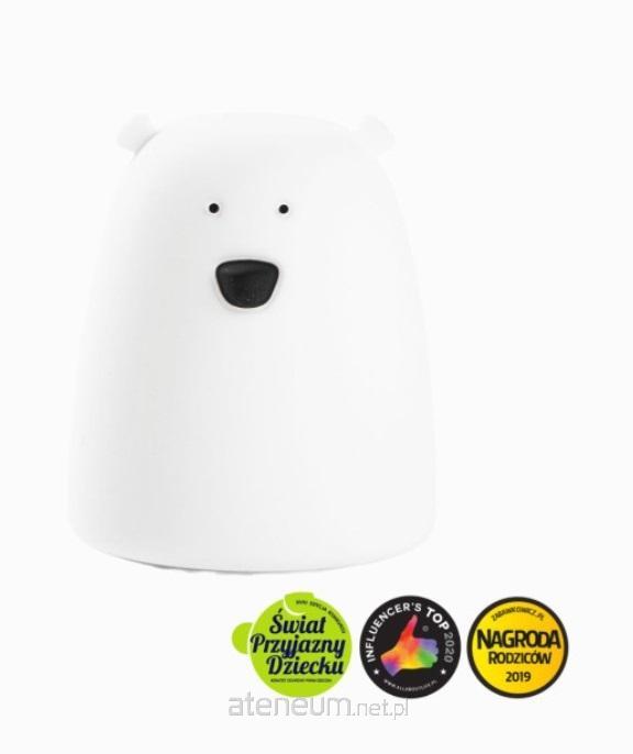 Lampka MIŚ MAŁY Rabbit & Friends ma charakterystyczny i urokliwy kształt misia o niewielkich, sterczących uszkach, przenikliwych oczkach, zgrabnym nosku i okrągłym brzuszku. Jest cała biała, tylko oczka i nosek są czarne. Lampka zapewni kojące towarzystwo w trakcie wieczornych zabaw i spokojny, bezpieczny sen. W godzinach nocnych ułatwia doglądanie najmłodszych pociech, zmianę pieluch i karmienie piersią. Nieco starszych dzieciom posłuży jako przenośne oświetlenie w drodze przez ciemny korytarz do łazienki lub sypialni rodziców. Paleta kolorów lampki stworzy w pomieszczeniu niepowtarzalny, harmonijny, wypełniony miękkim światłem ciepły klimat. Lampka działa na poklepywanie. Dodatkową funkcją jest możliwość ustawienia automatycznego wyłączenia lampki po 1 godzinie. Obsługa lampki jest intuicyjna - nawet małe dziecko poradzi sobie bez problemu. Lampka Rabbit & Friends nie ma ostrych krawędzi ani się nie nagrzewa (dzięki technologii LED). Zasilana jest poprzez baterie: 3 x AAA. Wykonana jest z wysokiej jakości, certyfikowanego, bezpiecznego, wolnego od BPA, silikonu. Lampka została doceniona i otrzymała kilka nagród: XVIII edycji konkursu Świat Przyjazny Dziecku organizowanej przez Komitet Ochrony Praw Dziecka, III edycji plebiscytu Influencers Top 2020 oraz prestiżowego konkursu Zabawka Roku, Nagroda Rodziców 2019 portalu zabawkowicz pl. Cechy: