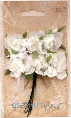 Ładne, kwiatki materiałowe, skręcone w jedną wiązkę. Można je rozłączyć i używać pojedynczo do zdobień lub użyć jako całą wiązkę.