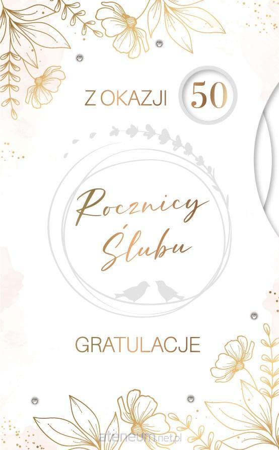 Luksusowy Karnet Rocznica Ślubu, regulowana, zakres regulacji od 5 do 60, z elementami złocenia lub srebrzenia, wykonany na specjalnym, grubym kartonie z licznymi dodatkami.