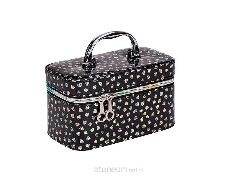 Kuferek S, walizka z lusterkiem, zapinany na zamek; czarny z hologramem, 19x11x10cm