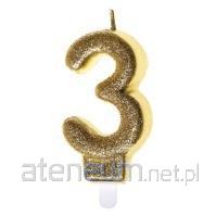 Świeczka urodzinowa, złoty brokat "3" SH-687