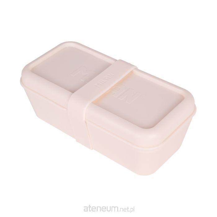 Prostokątny beżowy pojemnik na lunch. Posiada wewnętrzną przegrodę, która umożliwia rozdzielenie dwóch rodzajów żywności w tym samym pojemniku oraz beżowy zewnętrzny elastyczny pasek silikonowy. Nadaje się do odgrzewania w kuchence mikrofalowej (maks. 70oC) z otwartą pokrywą dla uwolnienia pary. Nadaje się także do przechowywania w zamrażarce (do -20oC) i do mycia w zmywarce do naczyń (maks. 70oC). Pokrywy i pojemniki można łatwo łączyć ze sobą. Matowe zewnętrzne wykończenie ułatwia uchwyt. Wnętrze z zaokrąglonymi narożnikami i błyszczącym wykończeniem dla lepszego czyszczenia. Materiał: tworzywo sztuczne wolne od BPA. Rozmiar: 20,6 x 10 x 7,4 cm. Pojemność: 0,75 litra.