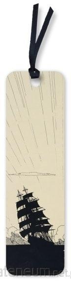 Pozłacana, papierowa zakładka do książki z ozdobną wstążką.