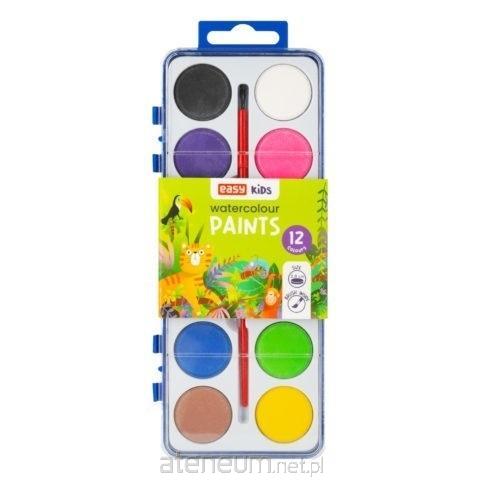 Farby akwarelowe EASY Kids to idealny produkt dla każdego dziecka.W skład zestawu wchodzi prostokątna zamykana paletka z pastylkami w 12 żywych kolorach i pędzelkiem. Konsystencja farb akwarelowych zmienia się pod wpływem wody, umożliwiając tworzenie ciekawych, delikatnych obrazów. Farbę najwygodniej jest nakładać pędzlem. Aby uzyskać cienkie linie wystarczy wybrać pędzelek o małym przekroju, do wypełniania kształtów najlepiej wykorzystać pędzel płaski. Farbki akwarelowe bez problemu zmywają się z blatów oraz spierają z większości tkanin.