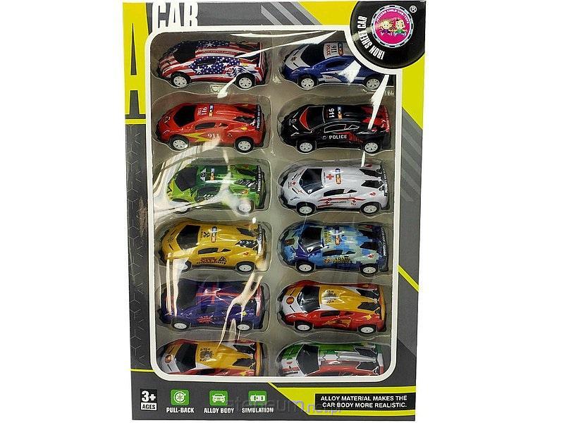 zestaw 12 aut metalowych 1:64; 31x19x3,5cm, W/B