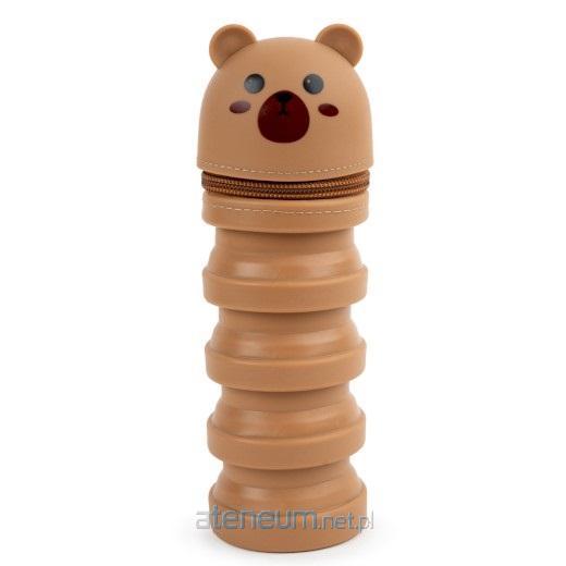silikonowy składany piórnik, może być używany jako przybornik na kredki, wysokość po złożeniu 12,5 cm, wysokość po rozłożeniu 21 cm, średnica 6,5 cm