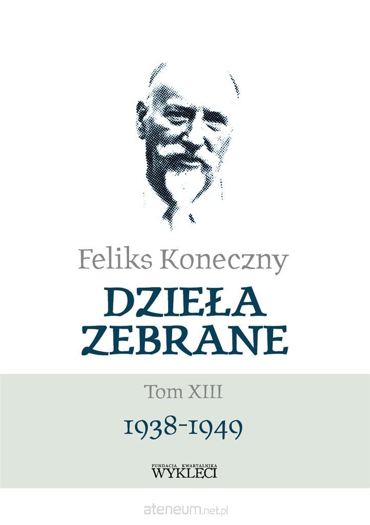 Tom XIII "Dzieł zebranych" Feliksa Konecznego obejmuje prace Profesora opublikowane u kresu jego życia - w latach 1938-1949. Wydano w tym czasie popularyzatorską książkę "Święci w dziejach narodu polskiego", w której Koneczny osadził postaci świętych, błogosławionych i osób świątobliwych w historii Polski, ukazując nierozerwalny związek między katolicyzmem a polskością. Tematyce wpływu religii na cywilizację poświęcone zostały także dwa istotne teksty: "Kościół jako polityczny wychowawca narodów" oraz "Protestantyzm w życiu zbiorowym". Ponadto w tomie XIII można znaleźć artykuły, które Feliks Koneczny publikował w okresie powojennym na łamach czasopism "Odra", "Niedziela" oraz "Tygodnik Warszawski". Poświęcił w nich wiele miejsca idei samorządności gospodarczej i terytorialnej, systemowi edukacji, rzemiosłu, jak również syntetycznemu przedstawieniu poszczególnych aspektów swej teorii cywilizacji. Wchodził także w polemikę z materializmem i socjalizmem. Niniejszy tom wzbogacony jest dodatkowo o nigdy niepublikowane, a odnalezione w ostatnim czasie, dwie broszury Profesora: "Głos w sprawie przyszłej konferencji pokojowej po II wojnie światowej" z 1943 r. oraz "Historia Polski dla Orawiaków" z 1946 r. Wart szczególnej uwagi jest także artykuł "Warunki powodzenia historycznego Polski" ogłoszony drukiem na łamach prasy konspiracyjnej.