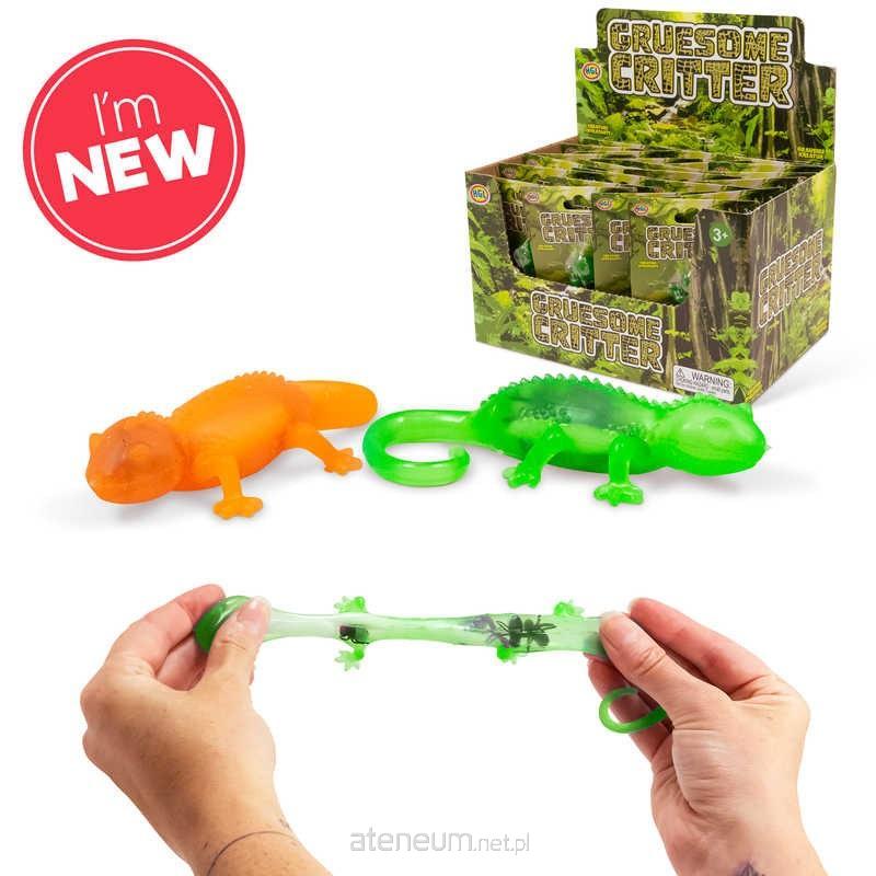 Rozciągnij i ściśnij jaszczurkę, aby zobaczyć obrzydliwe robaki i pająki w środku! Dostępne w kolorze pomarańczowym i zielonym.