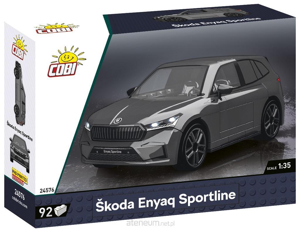 COBI-24576 koda Enyaq Sportline 92 klocki Grupa Wiekowa 5+ Skala 1:35 koda Enyaq Sportline to sportowa wersja popularnego elektrycznego SUV-a koda Enyaq iV. Ta wersja jest skierowana do kierowców, którzy pragną dynamiczniejszego wyglądu i bardziej sportowych osiągów, jednocześnie korzystając z zalet samochodu elektrycznego Model w skali 1:35 złożony w 100% z klocków COBI bardzo wiernie oddaje charakterystyczne kształty oryginalnego samochodu Skoda Enyaq Sportline.. Obracające się koła wyposażone w opony idealnie nadają się do poruszania modelem w trakcie zabawy. Model z klocków konstrukcyjnych COBI pokochają nie tylko dzieci, ale również dojrzali fani klocków konstrukcyjnych, kolekcjonerzy i pasjonaci motoryzacji. 92 wysokiej jakości elementy, Wyprodukowane w UE przez firmę z ponad 35-letnią tradycją, Spełniają normy bezpieczeństwa dotyczące produktów dla dzieci, W pełni kompatybilne z innymi markami klocków konstrukcyjnych, Zastosowano tylko trwałe nadruki bez użycia naklejek, Czytelna i intuicyjna instrukcja oparta na rysunkach i ikonach, Skala 1:35 Wymiary modelu (dł x szer x wys): 12,5cm x 6,5cm x 5cm