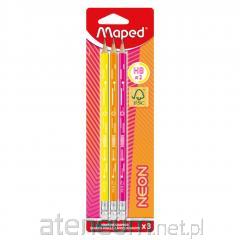 Ołówek z gumką HB neon 3szt MAPED