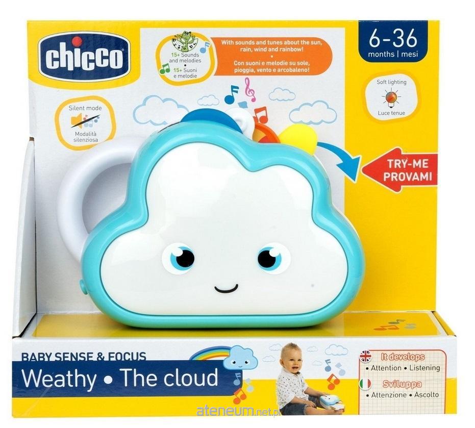 Chmurka to elektroniczna zabawka, która uczy elementów związanych z pogodą, łącząc je z kształtami, melodiami, dźwiękami i kolorami.