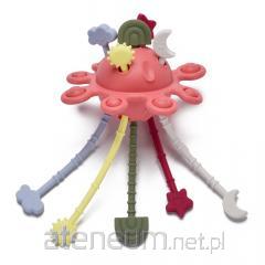 Kostka z elastycznymi ściankami kryje w swym wnętrzu całą gromadkę kolorowych klocków! Ta inspirująca zabawka pozwoli najmłodszym odkrywcom poznać różnice pomiędzy poszczególnymi kształtami klocków, ich kolorem, a także fakturą. Poza stymulowaniem zmysłu wzroku i dotyku, zabawka oddziałuje także na zmysł słuchu maluchów, a to za sprawą grzechotania, które bobas usłyszy za każdym razem, gdy potrząśnie którymś z klocków. Dzięki temu, że sznureczki, tworzące ścianki kostki, są elastyczne, klocki można do woli wkładać do zabawki i wyciągać je na zewnątrz.
