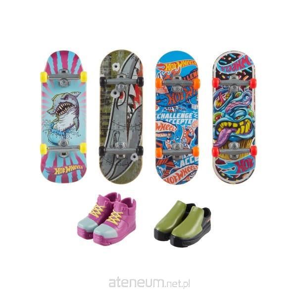 Ćwicz epickie sztuczki i trudne triki z tym wielopakiem Hot Wheels Skate z deskorolkami i butami na palce. Hot Wheels® i legenda skateboardingu, Tony Hawk, połączyli siły, aby stworzyć epickie deskorolki do jazdy palcami, które wyglądają niesamowicie podczas robienia trików! W tym zestawie są cztery różne deskorolki do jazdy palcami o różnorodnym wyglądzie oraz 2 różne pary butów deskorolkowych na palce, które pasują do wszystkich desek. Dzięki butom dzieci mogą wyczuć deskę palcami i ćwiczyć popisowe sztuczki. W każdym zestawie jest jedna wyjątkowa deska i para butów deskorolkowych, których nie znajdziesz nigdzie indziej. Kolory i elementy dekoracyjne mogą się różnić.