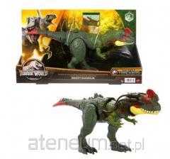 Ta niezwykle realistyczna figurka dinozaura T-Rex Totalny Atak wzbogaca najbardziej kultowego ze wszystkich dinozaurów o niszczycielski atak i niezwykłe funkcje. Zaawansowany atak obejmuje dynamiczne ruchy szyją w górę i w dół połączone z kłapaniem zębami i rykami. Im szybciej naciskasz guzik, tym bardziej spektakularne kłapnięcia i głośniejsze ryki! Ten T-Rex jest również gotowy do walki dzięki wydłużającym się niemal dwukrotnie zębom! Wystarczy zeskanować kod tropiący w bezpłatnej aplikacji Jurassic World Play za pomocą kompatybilnego smartfona/tabletu (z Androidem lub iOS, nie znajduje się w zestawie), aby uzyskać dostęp do wirtualnej wersji dinozaura oraz atrakcyjnych gier. Kolory i elementy dekoracyjne mogą się różnić.