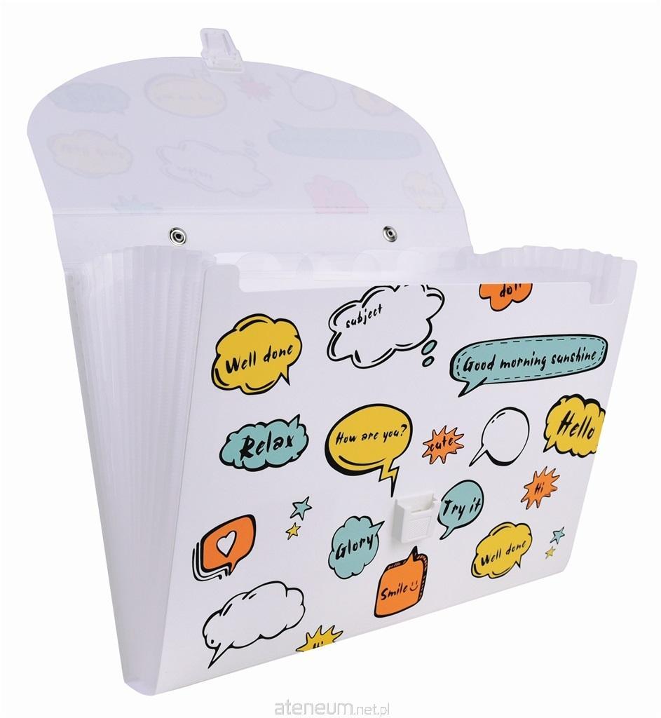 Teczka z uchwytem 13 przegródek, 12 zakładek BIAŁA Z WESOŁYM PRINTEM, format A4