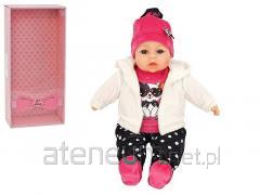 Elegancki strój sprawia, że dziewczynka wygląda jak księżniczka. Ubrana jest w długą sukienkę z rozkloszowanym dołem. Czerwona kreacja ma brokatową górę, a jej dół stanowi tiul. Podkreślając talię lali w ubranku wszyto beżową ażurową wstawkę wykończoną kokardą. Na nóżkach dziewczynka ma założone złote buciki. Dodatkowo lala ma na sobie siateczkowe spodenki i ciepły szal o takim samym wzorze co berecik. Wszystkie ubranka i dodatki można zdjąć i przebierać lalę bez końca. Dziecko może troszczyć się o swoją towarzyszkę, przebierać oraz zabrać ją wszędzie.