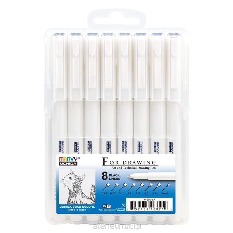 Długopisy pigmentowe na bazie wody z miękkimi, gładkimi końcówkami od 0.03 mm do pędzelka, nadaje się do projektowania dzieł sztuki. Końcówki tych długopisów są mocne i nie zmieniają kształtu nawet po mocniejszym naciśnięciu, a wodoodporny pigmentowy atrament nie blaknie ani nie rozmazuje się podczas pocierania. Idealny do szkicowania, grafiki, rysunków, tworzenia komiksów i rysunków w stylu japońskim. Podczas rysowania komiksów pisaki o grubości od 0,03 do 0,05 mm doskonale nadają się do bardzo cienkich linii (takich jak rysowanie oczu i włosów), a od 0,3 do 1,0 mm do grubszych linii i poprawek. Za pomocą końcówki pędzla możesz rysować linie o różnej grubości i z łatwością pokrywać większe obszary rysunku. Trwały, może być używany do znakowania dokumentów. Długopisy "For Drawing" są wypełnione bez-kwasowymi, nieszkodliwymi atramentami na bazie wody, które są bardzo odporne na wodę i blaknięcie, szybko schną. Nadaje się zarówno dla profesjonalistów, jak i amatorów.