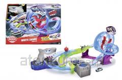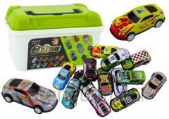 Laweta z dwoma pojazdami na licencji Mercedes-Benz - policja i straż pożarna. Przyczepę można odczepić i opuścić pokrywę do załadunku i rozładunku pojazdów. Długość lawety 32 cm, pojazdów 9 cm, 3l+