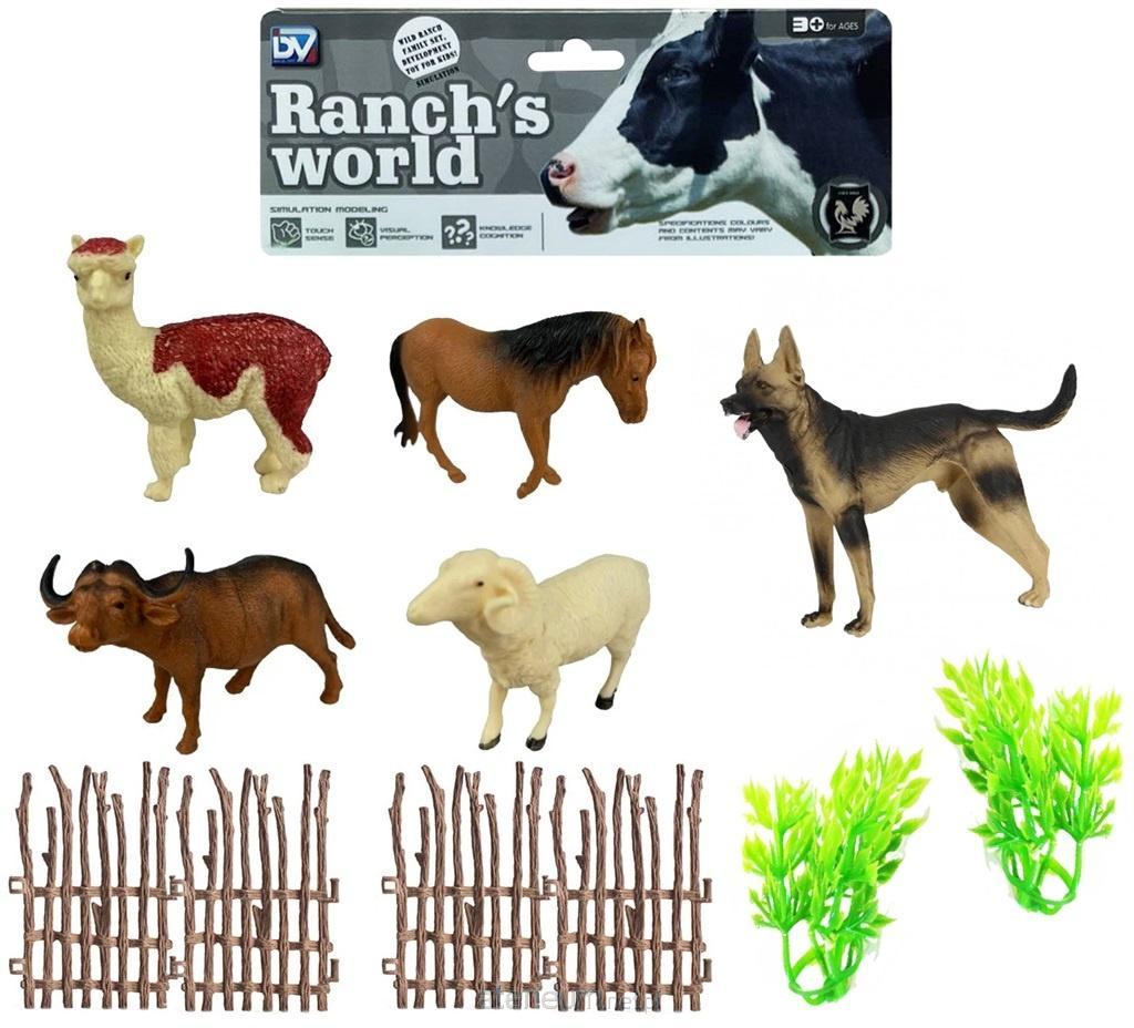 Zestaw 5 figurek zwierząt domowych oraz akcesoriów.