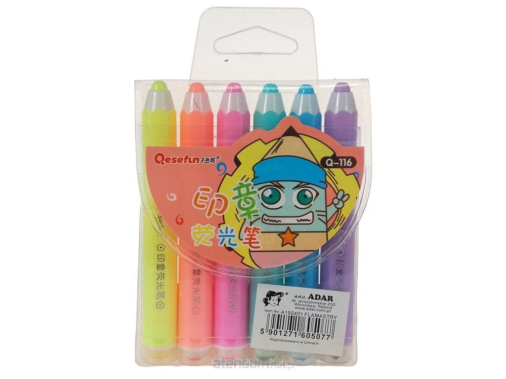 zestaw 6 neonowych flamastrów 11 cm,skuwka zakonczona stempelkiem;11cm/8cm/1,5 cm
