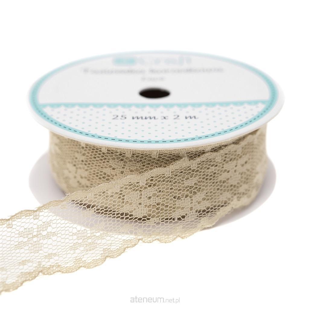 Subtelna tasiemka koronkowa w kolorze beżowym.
