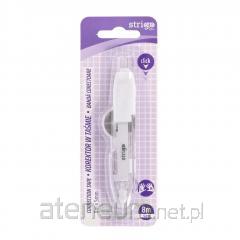 Korektor w taśmie z automatycznym mechanizmem zabezpieczającym przed zabrudzeniem i uszkodzeniami. Ergonomiczny kształt zwiększa komfort użytkowania. Wyjątkowo odporna taśma nie rozrywa się ani nie pęka. Korektor szybko schnie, dzięki czemu poprawek można dokonywać natychmiast po jego użyciu. Możliwość stosowania na wszystkich rodzajach papieru. Szerokość taśmy: 5mm, długość taśmy: 8m. Dostępny w czterech kolorach obudowy: biały, czarny, zielony, niebieski.