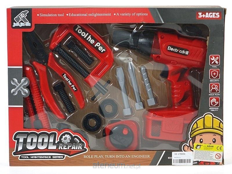 Zestaw narzędzi z wiertarką na baterie; 36x26,5x6,5cm, w/b