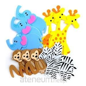 Zestaw warstwowych naklejek z pianki, z motywami zwierząt z safari, w 4 różnych wzorach.