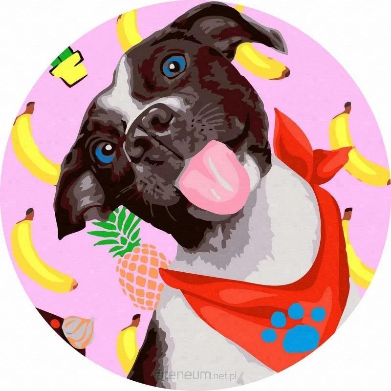 Malowanie po numerach okrągłe - Pies-uśmiech 40cm