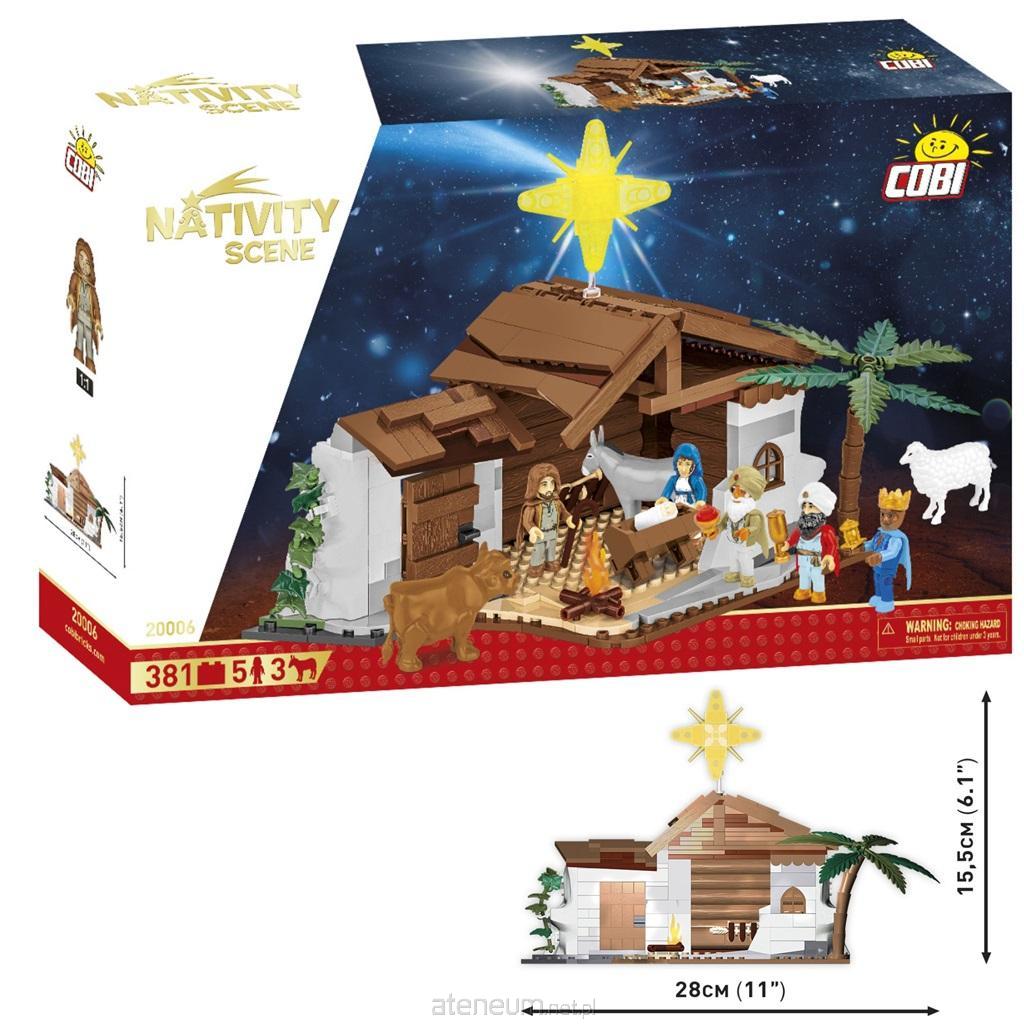 COBI-20006 Nativity Scene 370 klocków 5 figurek 3 zwierzęta Grupa wiekowa 7+ Szopka bożonarodzeniowa to tradycyjna dekoracja związana z obchodami Świąt Bożego Narodzenia, która przedstawia scenę narodzin Jezusa Chrystusa. Szopki mają różne formy, od prostych, domowych modeli po rozbudowane i artystycznie wykonane instalacje. Ich celem jest przypomnienie wiernym o biblijnej historii narodzenia Jezusa w Betlejem. Tradycja tworzenia szopek sięga Średniowiecza. Za jej początki często uznaje się działalność św. Franciszka z Asyżu, który w 1223 roku w Greccio we Włoszech stworzył żywą szopkę, odtwarzającą scenę narodzin Jezusa z udziałem ludzi i zwierząt. Chciał w ten sposób lepiej przybliżyć ludziom tajemnicę Wcielenia. Wkrótce po tym wydarzeniu szopki zaczęły pojawiać się w całej Europie, początkowo w klasztorach, a później także w kościołach i domach prywatnych. Tradycyjna szopka zawiera figurki przedstawiające Świętą Rodzinę: Jezusa, Maryję i Józefa. Często dodaje się również aniołów, pasterzy, Trzech Króli (Mędrców ze Wschodu), a także zwierzęta takie jak woły, osły czy owce. W centralnym punkcie szopki znajduje się mały żłóbek, w którym leży nowonarodzony Jezus. Cała scena jest umieszczona w stajence lub grocie. W szopce od COBI nie zabrakło najbardziej charakterystycznych elementów tradycyjnej stajenki. Ciekawa konstrukcja składająca się z 370 elementów zawiera sporo ciekawej roślinności, między innymi porastający ścianę bluszcz czy rosnąca przy stajni palma. Nad niewielką budowlą znajduje się gwiazda betlejemska kierująca mędrców ze wschodu. W swoich dłoniach trzymają dary, które wręczą nowo narodzonemu Chrystusowi. Wokół krąży bydło: wół, owca i osiołek. W samej stajence znajduje się święta rodzina: Józef, Maryja i Jezus. 370 wysokiej jakości elementów, Wyprodukowane w UE przez firmę z ponad 35-letnią tradycją, Spełniają normy bezpieczeństwa dotyczące produktów dla dzieci, W pełni kompatybilne z innymi markami klocków konstrukcyjnych, Zastosowano tylko trwałe nadruki bez użycia naklejek, Czytelna i intuicyjna instrukcja oparta na rysunkach i ikonach, Wymiary modelu (dł x wys): 28cm x 15,5cm